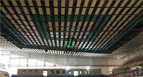 凱音吸聲體是專(zhuān)用于體育館空間吸聲裝飾作用的功能性裝飾材料,是一種分散懸掛于建筑空間上部,用以降低室內(nèi)噪聲或改善室內(nèi)音質(zhì)的吸聲構(gòu)件??臻g吸聲體具有用料少、重量輕、投資省、吸聲效率高、布置靈活、施工方便的特點(diǎn)。